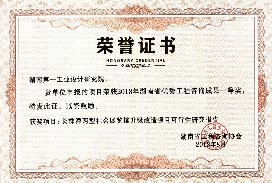 湖南省優(yōu)秀設(shè)計(jì)表揚(yáng)金獎(jiǎng)(1984)